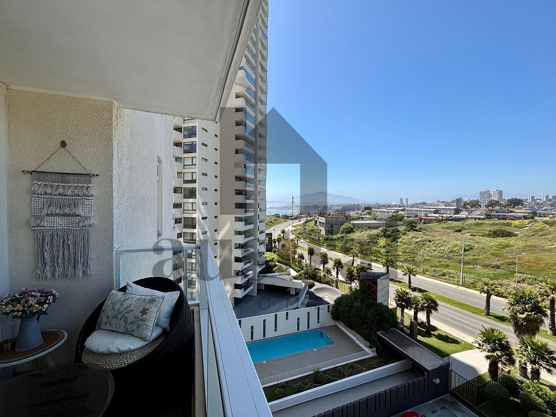 The building has direct access to Concón Reñaca Avenue. It is located just 9.3 km from the Vergara Pier in Viña del Mar and 123 km from Arturo Merino Benítez International Airport. It is easy to get around by car or intercity buses on the same avenue, and it is a 27-minute drive from the Viña del Mar Bus Terminal.