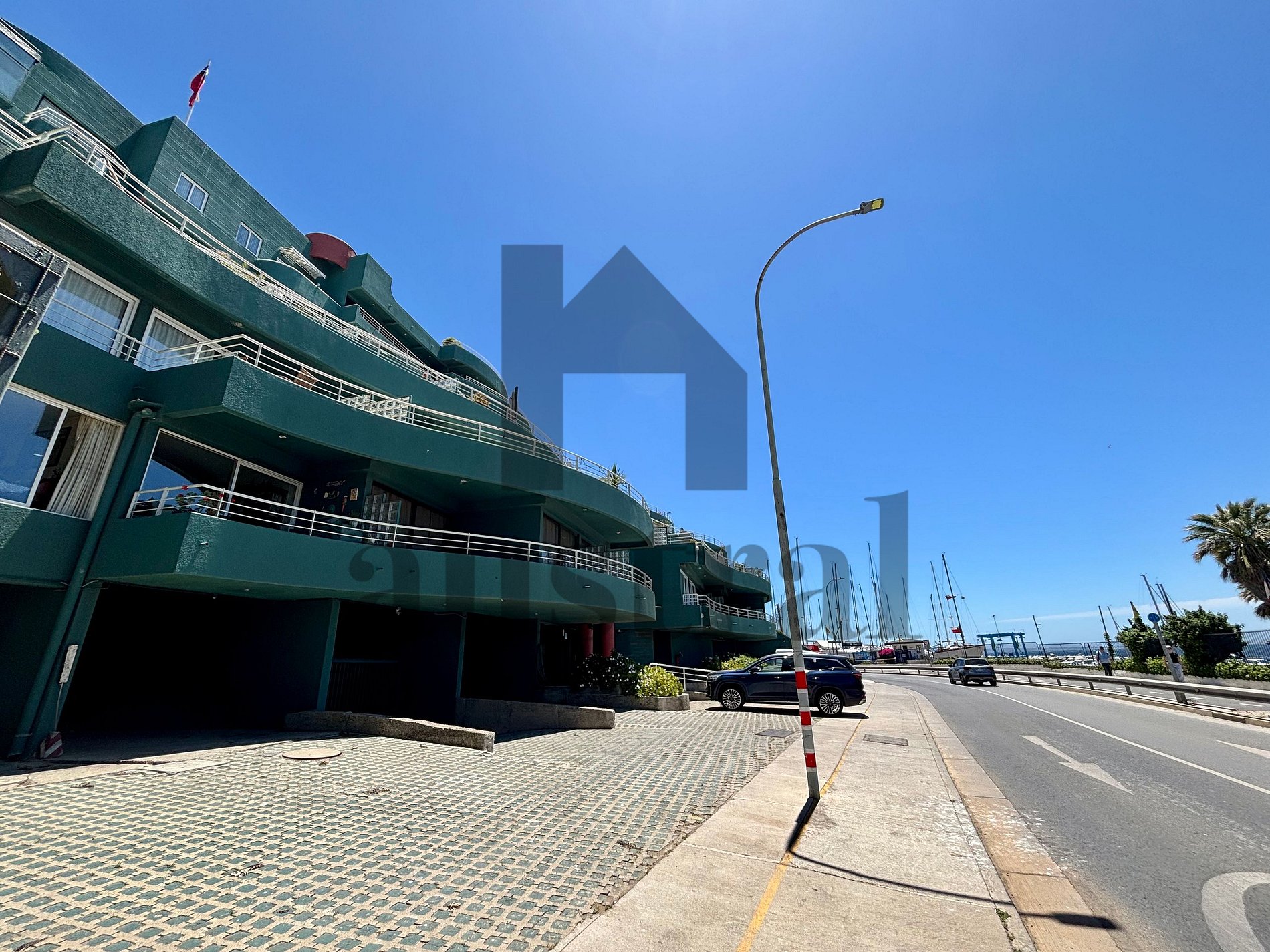 It is well connected by public transportation, with several bus lines nearby, and can be reached by car from Arturo Merino Benítez Airport (SCL) in approximately 1 hour and 30 minutes. It also has private parking. The Viña del Mar Bus Terminal is about 15 km away (20-minute drive).