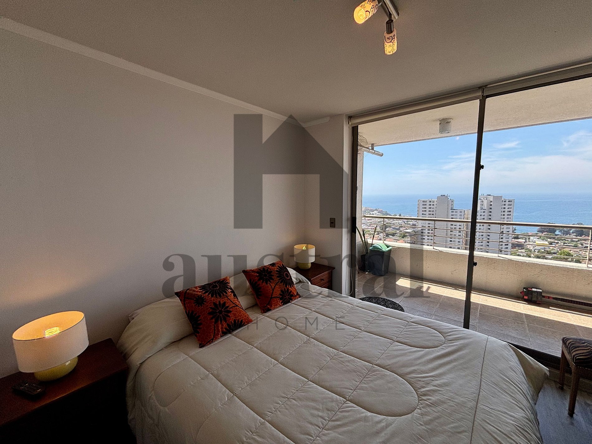 This comfortable 2-bedroom, 2-bathroom apartment in Concón offers a perfect space for families or groups. With an ideal location, you can enjoy panoramic ocean views and be close to the Concón Dunes and delicious seafood restaurants. The place is quiet and with easy access to Viña del Mar and Valparaíso. It has spacious common areas, a fully equipped kitchen, and everything you need for a comfortable and relaxing stay.