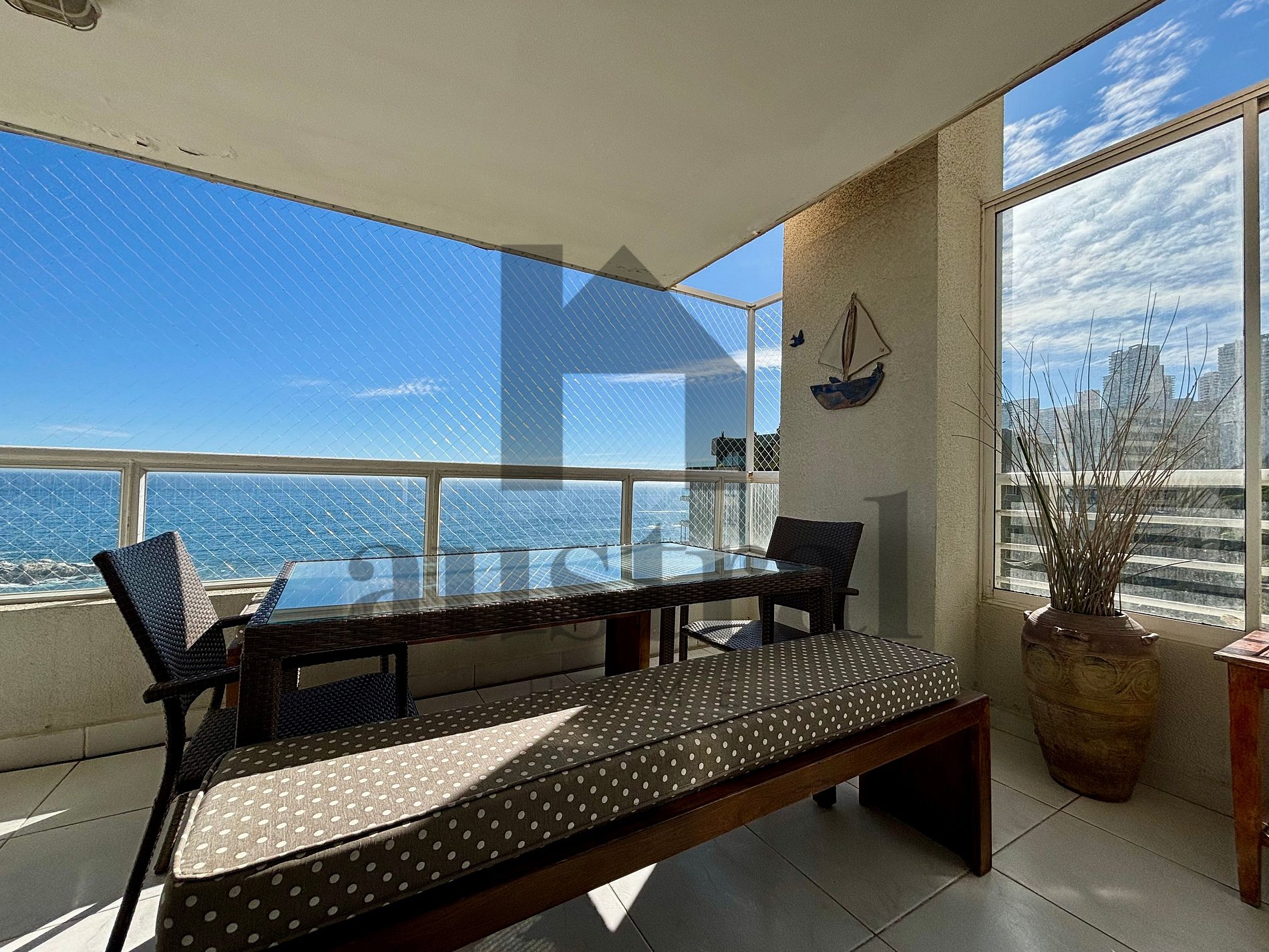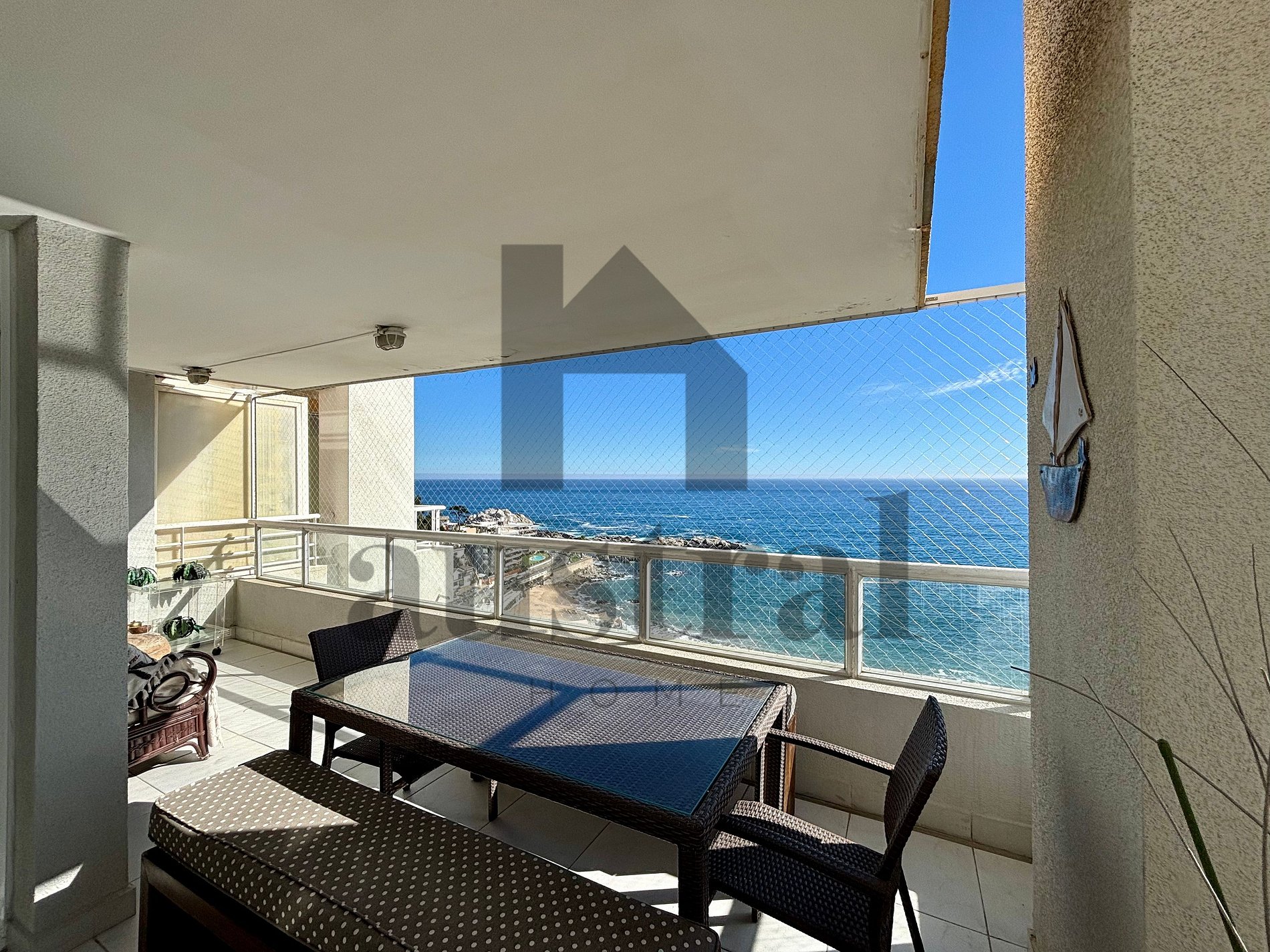 Stunning oceanfront apartment in Reñaca. Featuring two bedrooms, two bathrooms, a living room, dining area, separate kitchen, and an open terrace. Fully equipped for a relaxed and care-free vacation.