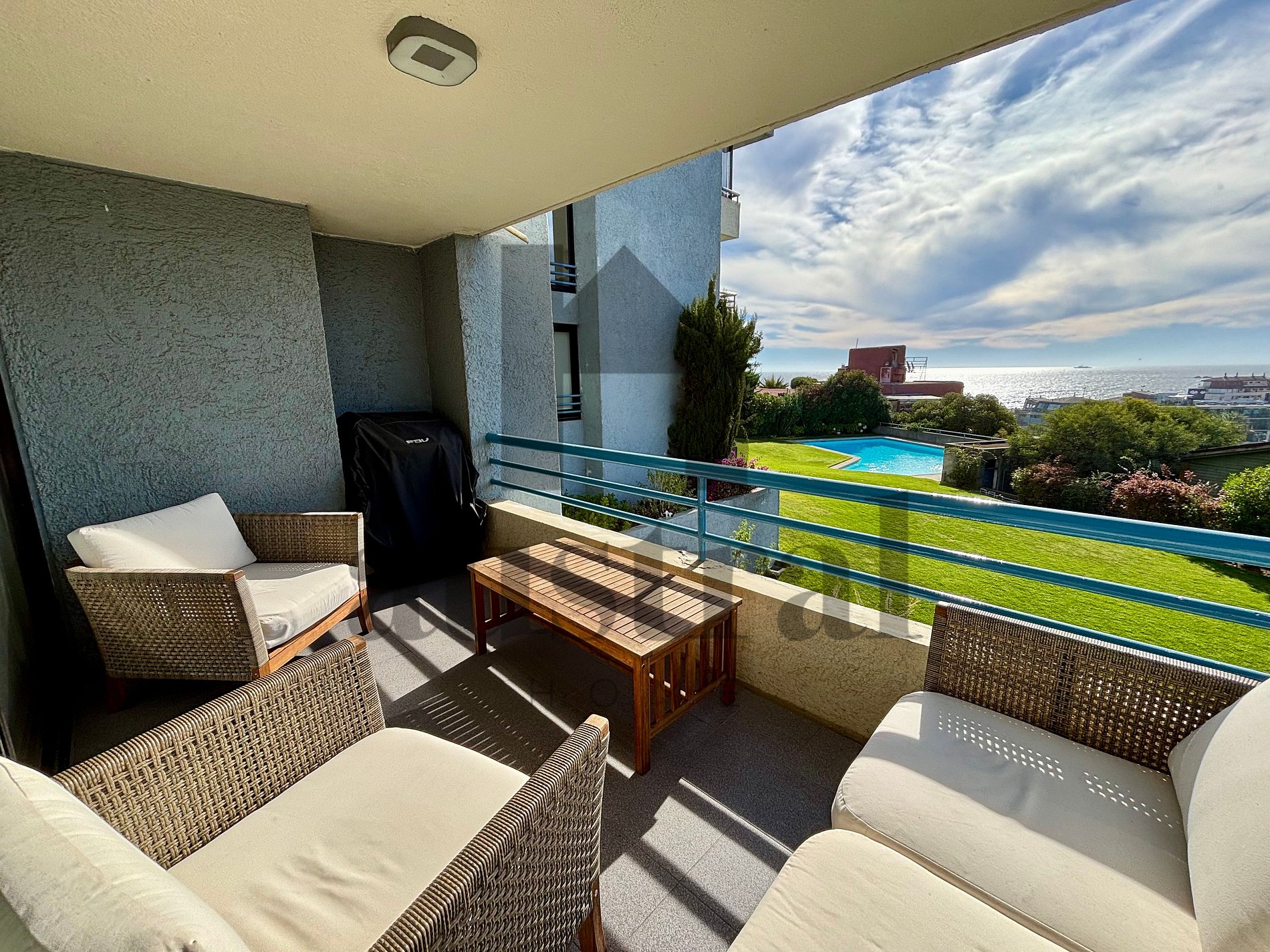 The terrace, with a privileged view of the gardens and the sea, invites you to enjoy every moment outdoors. You'll be within very short distance of the renowned Reñaca beach, making this place a truly exclusive seaside retreat.
