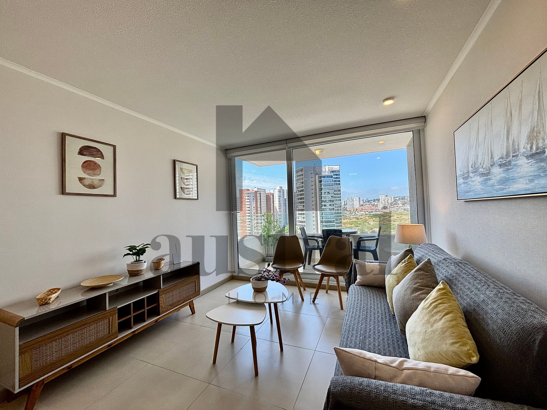 Este departamento ofrece lo mejor de ambos mundos: la cercanía a la playa (aproximadamente a cuatro cuadras de playa Los Lilenes) y la comodidad de estar cerca de restaurantes, tiendas y transporte público. El entorno natural, junto con las vistas despejadas y parciales al mar, hace que el lugar sea perfecto para relajarse mientras disfrutas del aire fresco y el sonido del mar.