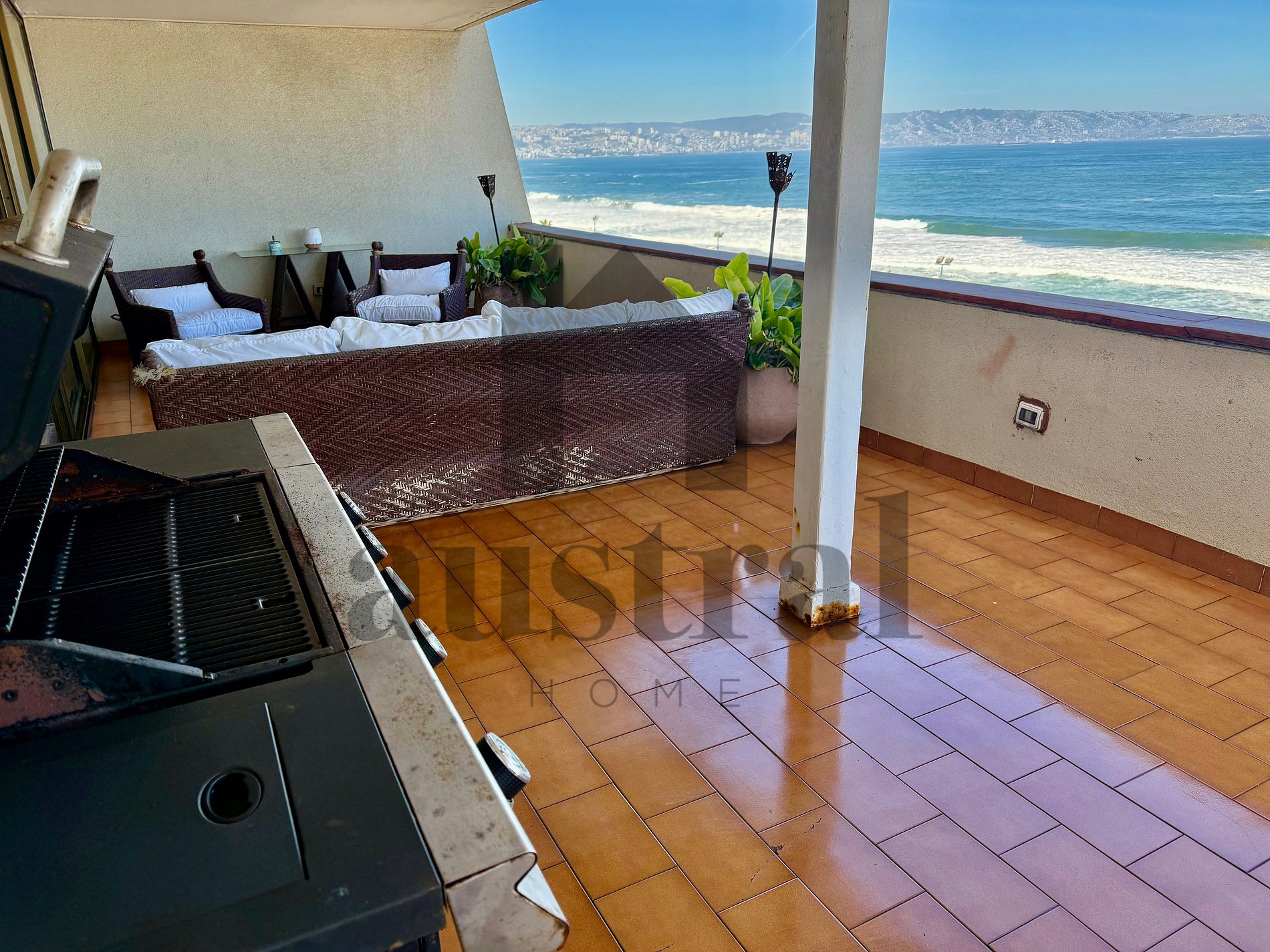 Este apartamento de 4 quartos e 3 banheiros se destaca por sua ampla varanda com vista para o mar, permitindo que você desfrute de amanheceres e pores do sol impressionantes. Os espaços são claros e confortáveis, perfeitos para grupos ou famílias. Além disso, a proximidade da praia de Reñaca e de outros pontos de interesse faz dele o lugar ideal para combinar descanso e diversão.