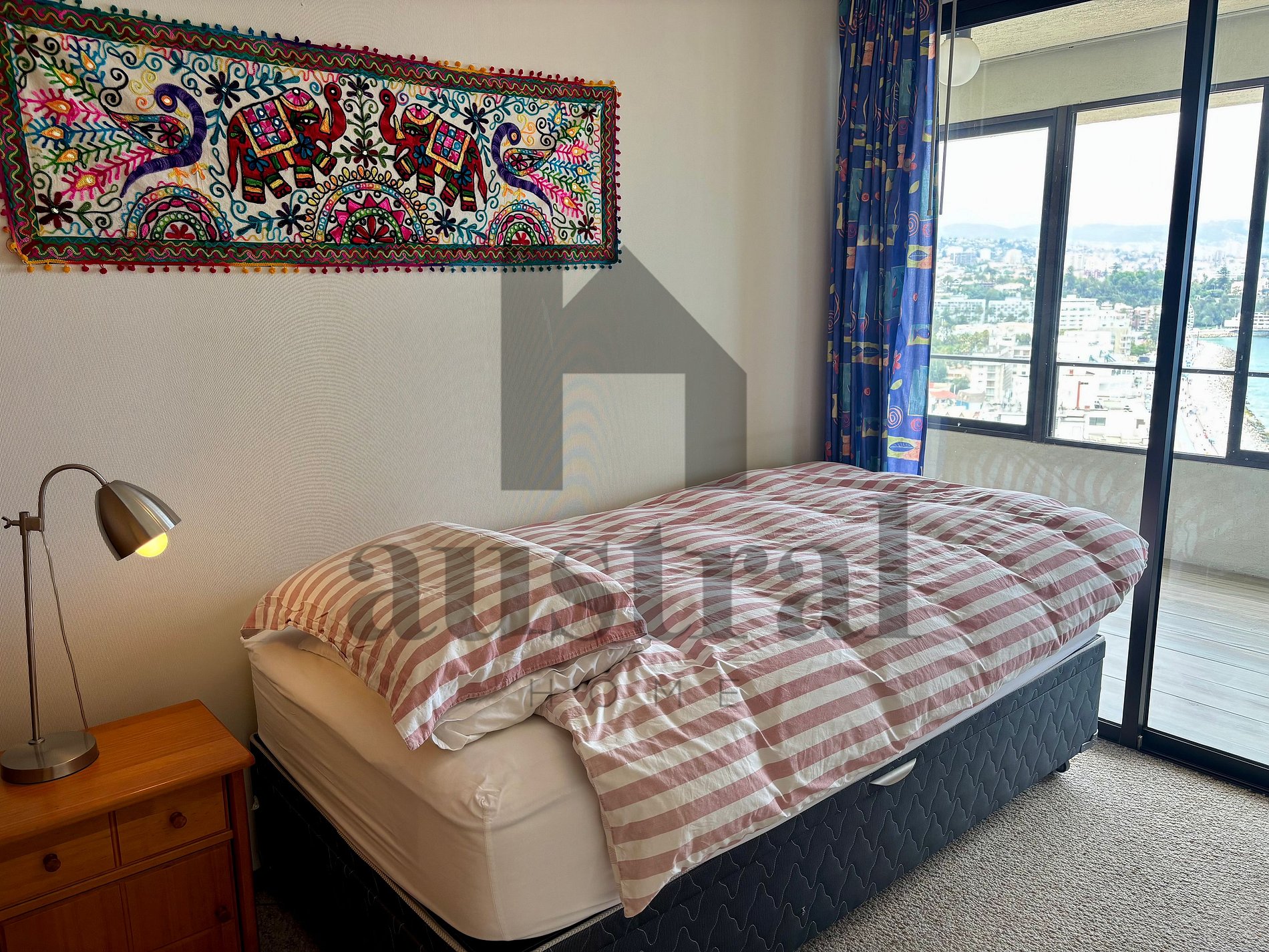 Possui um quarto espaçoso e confortável, sala de estar, terraço com grandes janelas que oferecem uma vista panorâmica do mar, cozinha equipada e banheiro completo.