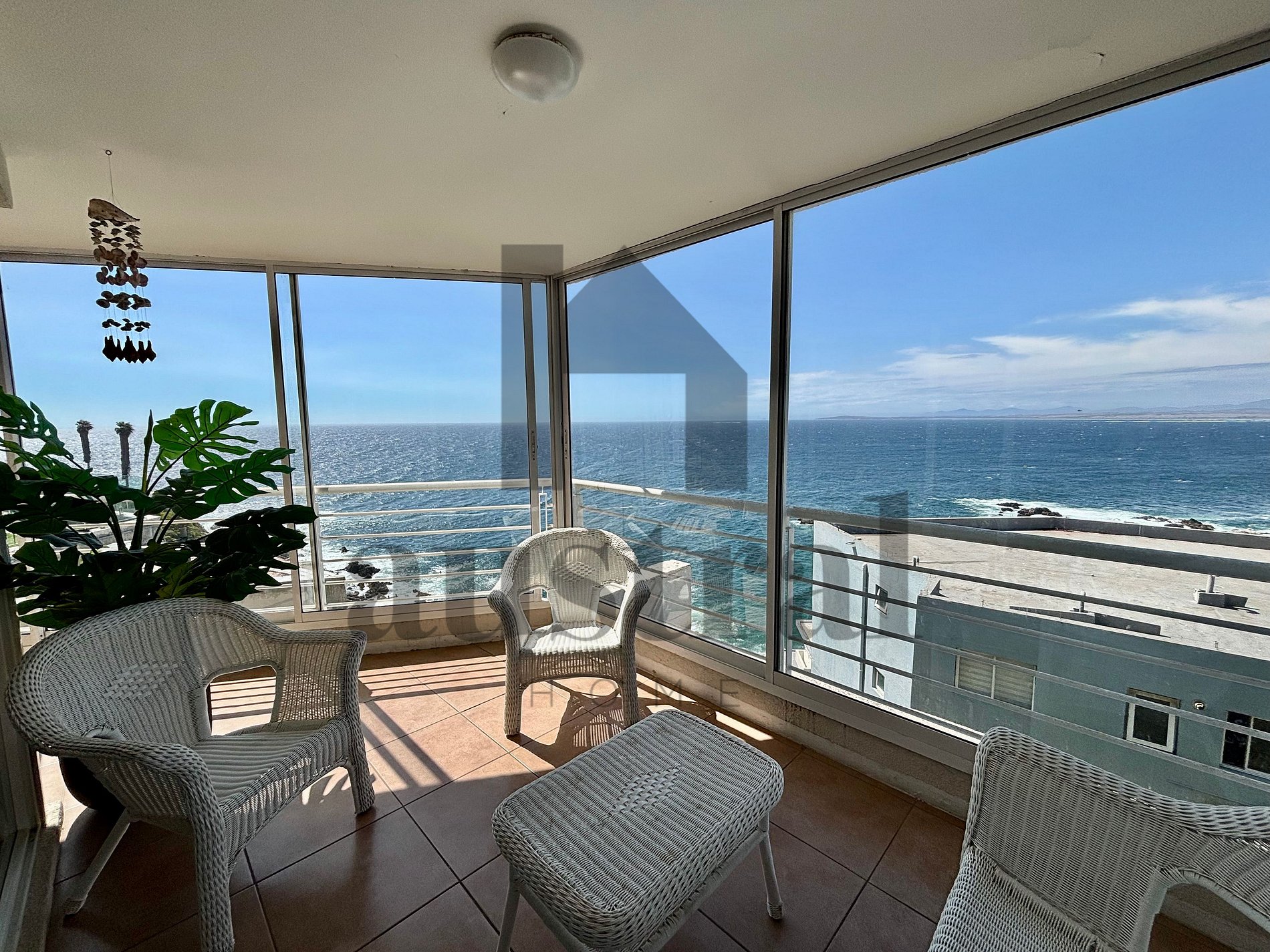 A joia deste espaço é seu amplo terraço fechado com vidro, que oferece uma vista panorâmica direta para o mar, permitindo que você desfrute da brisa marinha e da paisagem em todo o seu esplendor. Imagine começar o dia com um café na mão enquanto observa o mar e terminar com um pôr do sol deslumbrante, visível de todas as janelas do apartamento. Cada pôr do sol será uma experiência inesquecível.
